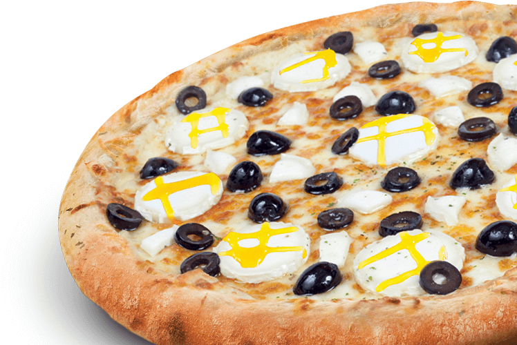 Crème fraîche, mozzarella, fromage de chèvre, olives.